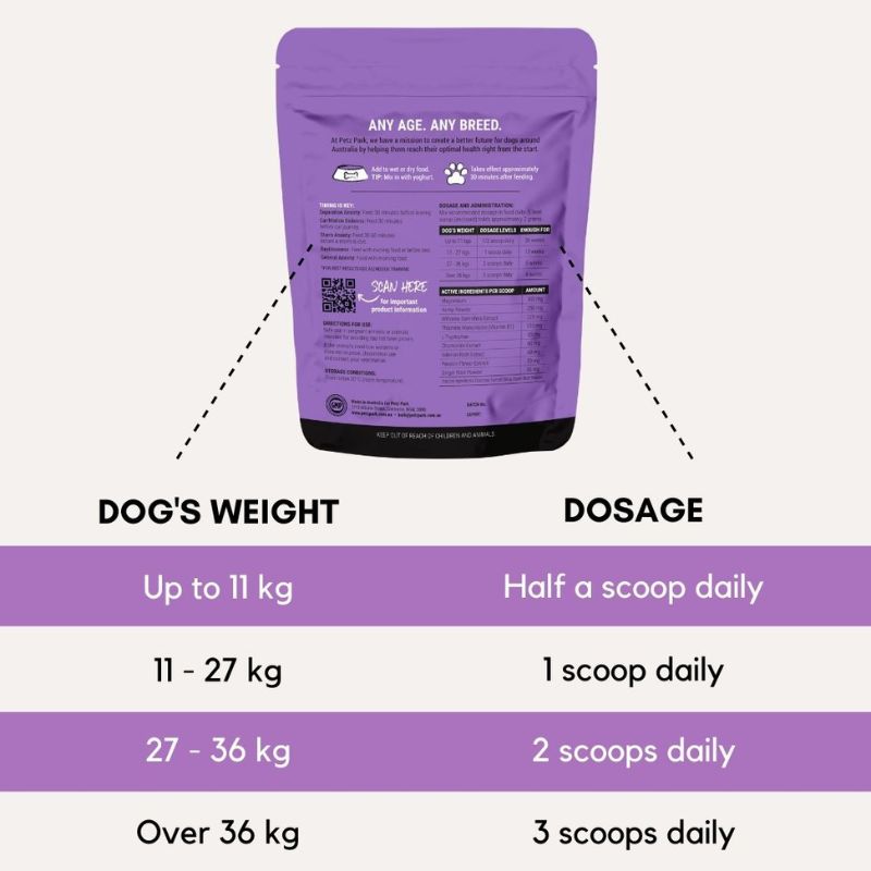 - Bột bổ sung cho chó này được các chuyên gia trên khắp nước Úc sử dụng, giúp chó thư giãn trong những tình huống chúng cảm thấy căng thẳng.