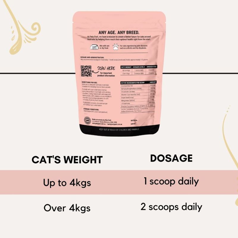 - Thuốc bổ sung khớp cho mèo này cũng được bào chế để giúp mèo già bị suy thoái khớp nói chung.