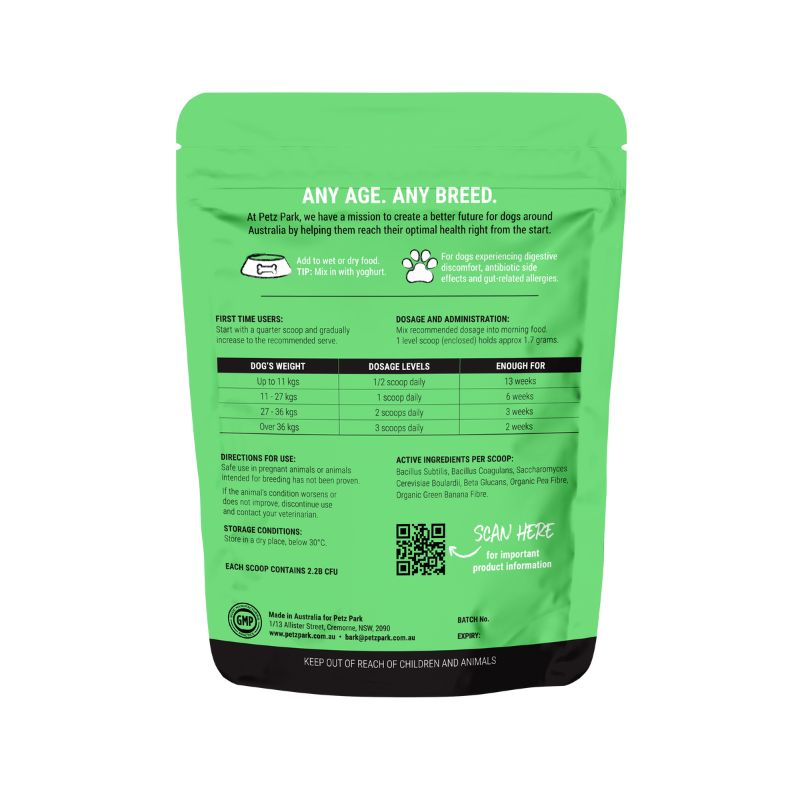 - Probiotic dành cho chó này là một chất bổ sung tiêu hóa không chứa ngũ cốc, được thiết kế để điều chỉnh sức khỏe đường ruột của chó.