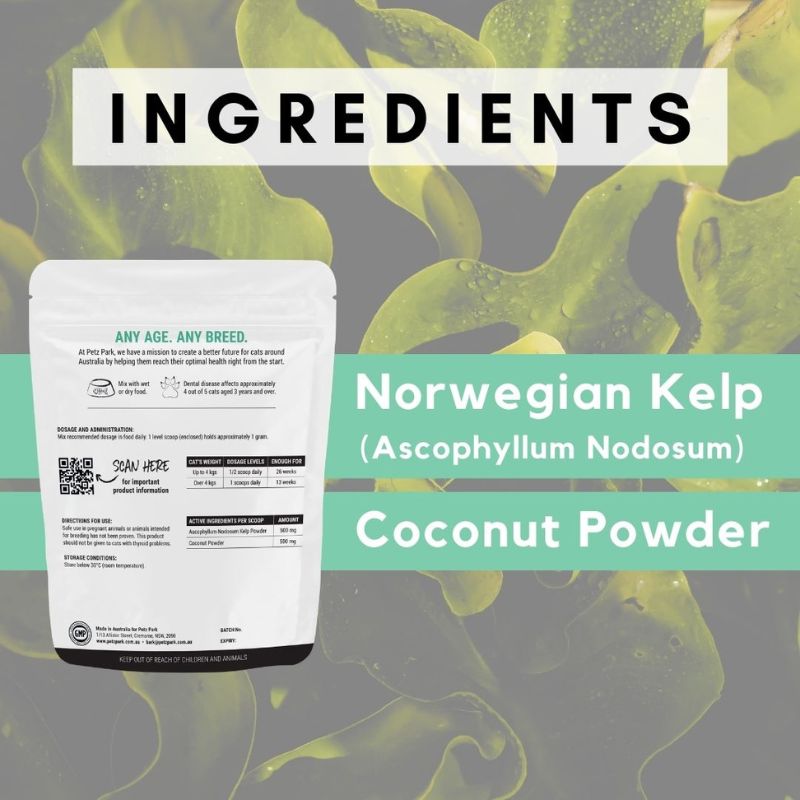 1. Tên sản phẩm: Bột Tảo Bẹ Vệ Sinh Răng Cho Mèo - Petz Park - 90g