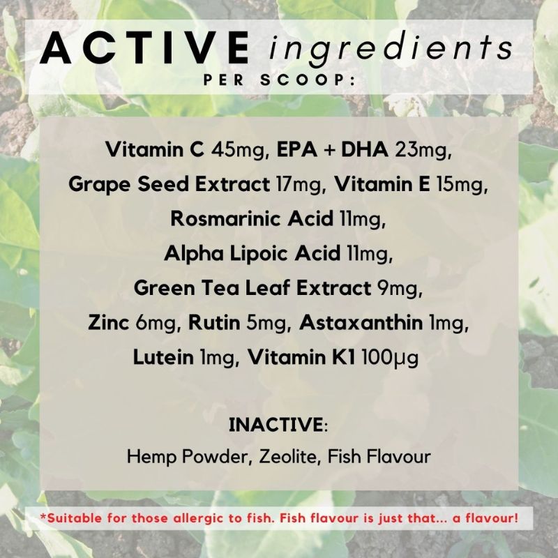 - Bao gồm Vitamin C và E, axit béo Omega 3, Astaxanthin, Lutein...